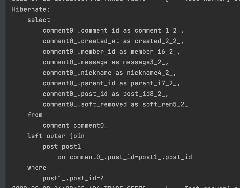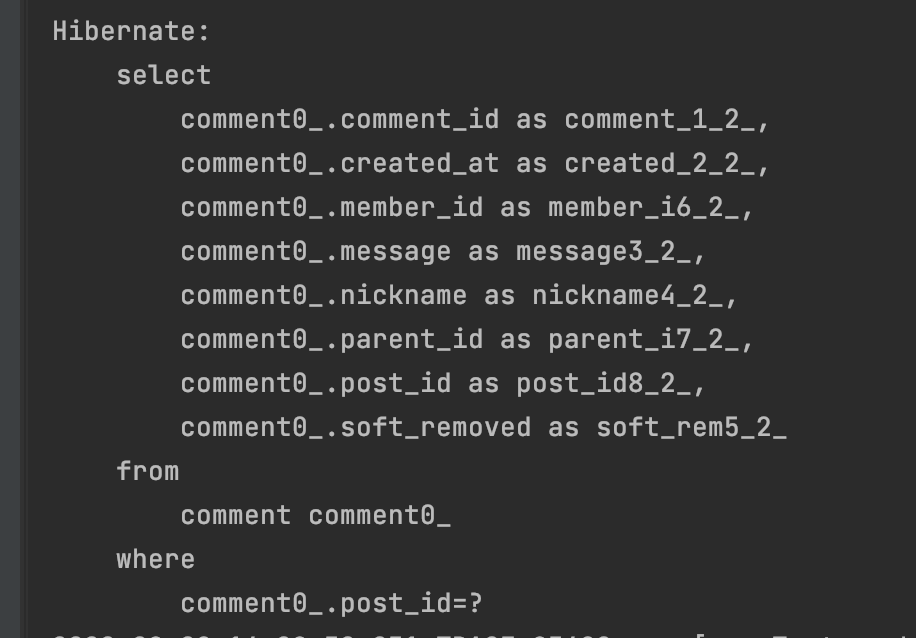select * from comment as c where c.post_id = ?그런데... 실제로 실행을 해보고 나니 아래와 같은 쿼리가 나왔다.